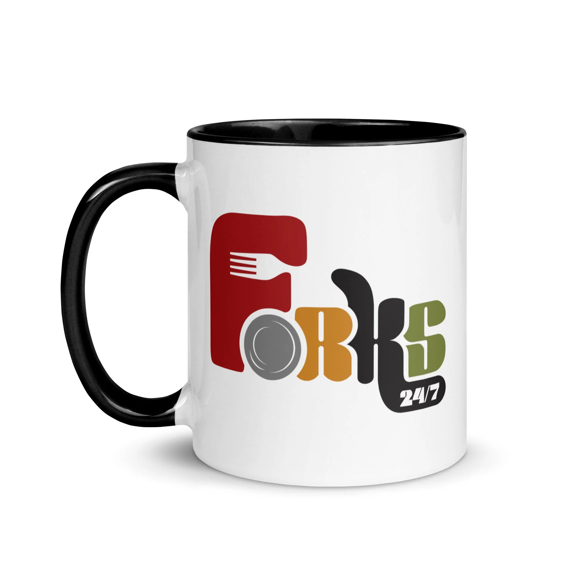 Elevate your coffee or tea ritual with the Forks247 Black & White Mug! Designed for those who love a touch of style with their sips, this ceramic mug features a sleek black-and-white design complemented by a vibrant rim, handle, and interior. It’s more than just a mug—it’s a statement piece that adds personality to your morning routine and a pop of color to your mug collection.